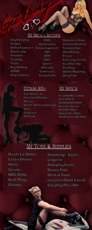 Fetish Kink e Roleplay, ad esempio: Femdom, Sissificazione, Umiliazione, Edging e Negazione, Cuckhold, Fantasie di Ricatto, Dominazione