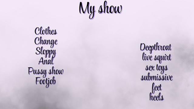 I'll be available every day from 6:30 AM to 1:30 PM Colombian time so you can find me at your convenience. You can reach out to me to request custom shows or ask me to fulfill your wildest desires.
