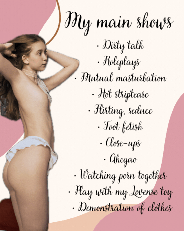 • Offro uno spettacolo di vestiario unico. Ho una varietà di costumi, oltre a tacchi, lingerie, costumi da bagno, abiti, top, gonne e altro ancora. Per gli appassionati di moda adolescenziale, ho look "adolescenti" speciali, outfit scolastici.