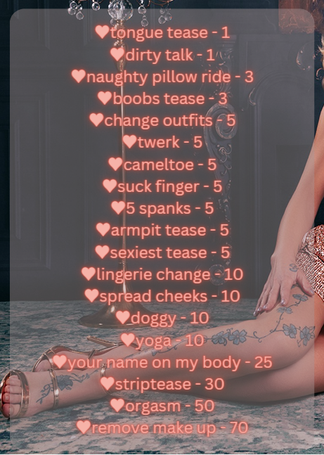 Você pode PEDIR UM ENCONTRO com LaurelHolmes quando for conveniente para você. Tudo está no seu fuso horário, suas horas locais. Ela receberá seu pedido e o aceitará se sua agenda estiver livre. Você receberá uma confirmação por e-mail e poderá se preparar para sua experiência quente.