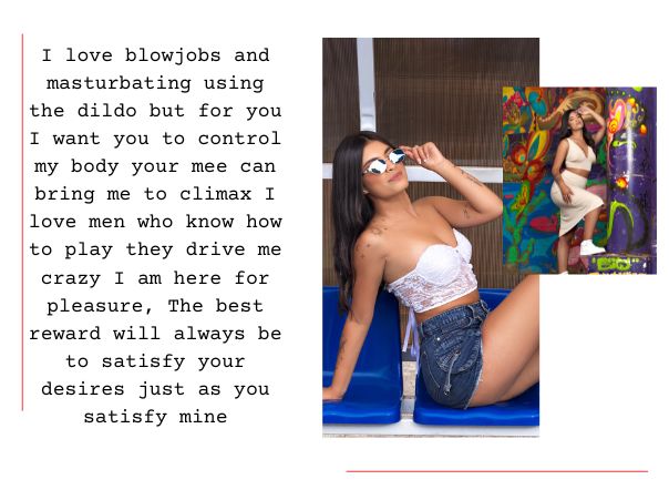 I love good conversations, the previous romp until my nipples become hard, I enjoy feeling how the pleasure spreads through my body and makes me want to take off my clothes, in the versatility and variety is the pleasure and well, I am a whole box of surprises, Let's discover me.