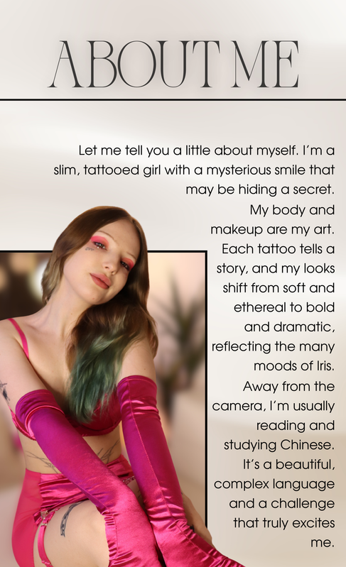 ÎNCĂ NU, Înregistrează-te gratuitTrebuie să ADĂUGI FONDURI în contul tău pentru a putea suna Iris sau orice alt model. Acesta este un sistem securizat care îți permite să plătești pentru show-uri private pe Skype cu plată per minut.