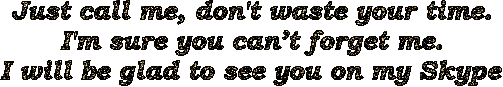 *I'm ordinary girl, I like to listen and share stories from life, sweet, friendly, sociable. I am a passionate and smug girl. You must depend on me. I like to smoke, watch TV shows, heart to heart conversations, I have a great imagination. I want to communicate with well-mannered guys who know how to treat a lady and respect her, but at the same time he can show all his passion and show his rudeness. I will treat you well. I enjoy my time online. I need to be closer to each other. Exchange opinions, support each other, joke and laugh. You can be 100% open with me*.